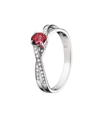 Anello oro bianco 18kt con diamanti e rubino ovale