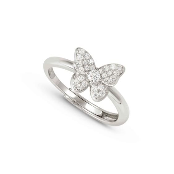 L’anello SweetMadame è finemente lavorato in Argento 925, impreziosito da una delicata farfalla e un pavé di scintillanti zirconi bianchi. Superficie rivestita in rodio bianco e zirconi bianchi, accuratamente selezionati, aggiungono un tocco di eleganza femminile e eterea, rendendo questo gioiello perfetto per chi desidera brillare con discrezione e raffinatezza.