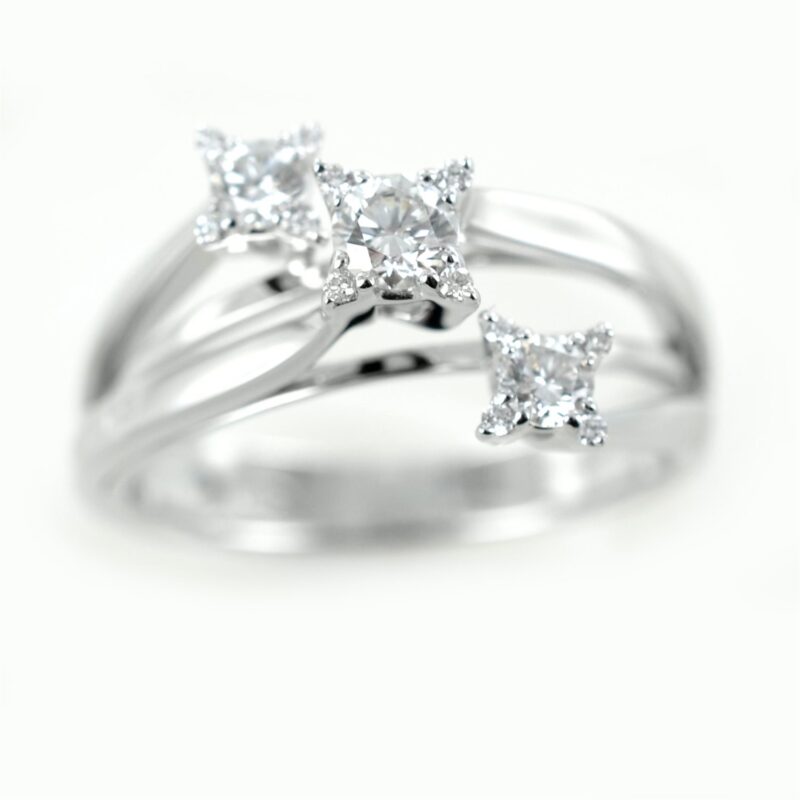Anello Trilogy in oro bianco con diamanti (ct. 0,47) colore G purezza VS.