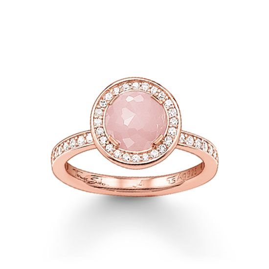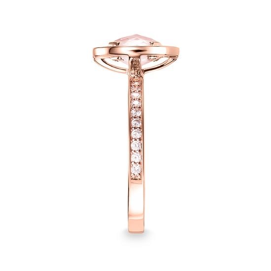 Anello Thomas Sabo Solitario “Light of Moon” donna TR1971 417 9. Anello realizzato in Argento sterling 925 placcato Oro Rosa 18 carati con Pavé di Zirconi bianchi e Quarzo rosa