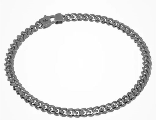 Bracciale in argento con catena bombata spessa a maglie fitte.