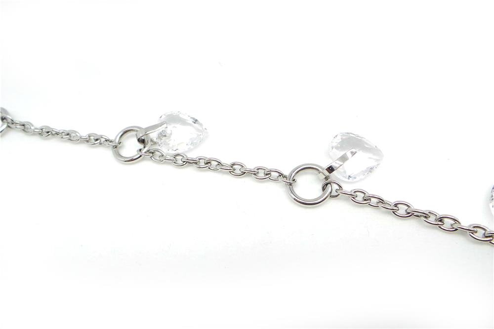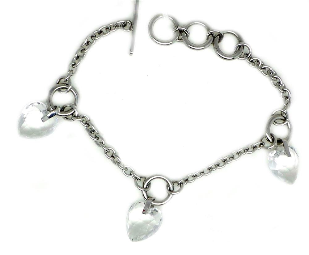 Bracciale Morellato in acciaio con tre cuori appesi, di cristallo sfaccettato, chiusura a T regolabile da 17 20 cm.
