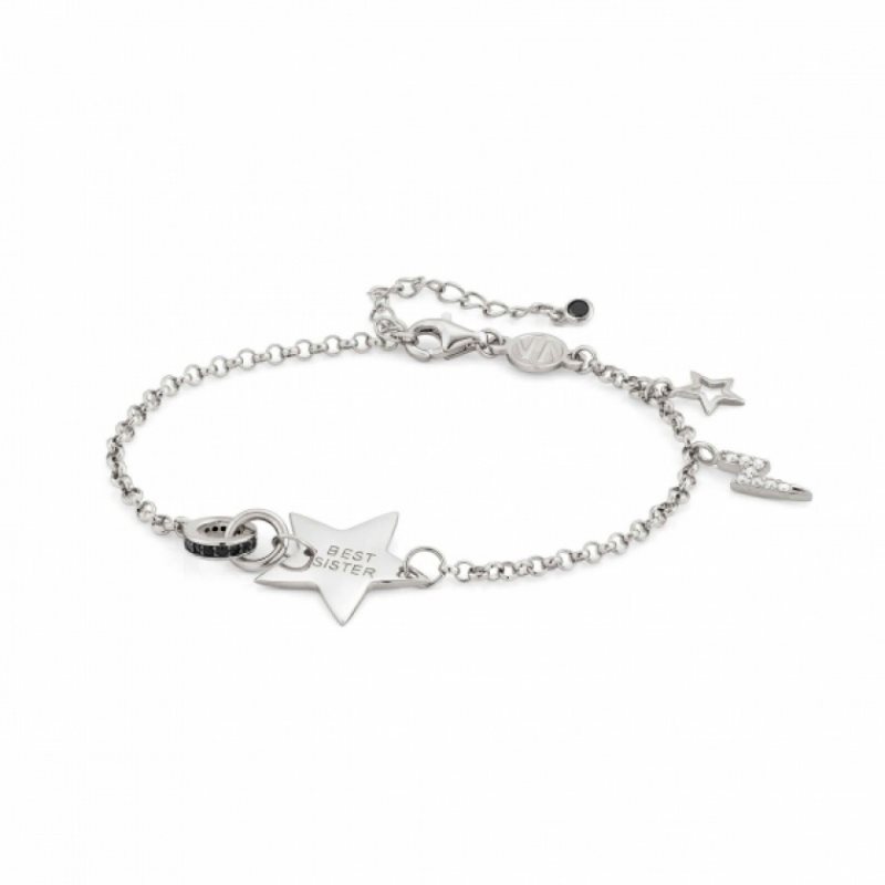 Bracciale Di Nomination Da Donna Della Collezione Easychic. Gioiello In Argento 925 E Zirconi Best Sister E Finitura Argento. Lunghezza: 16/19 Cm.