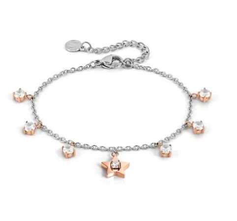 Questo gioiello unico nel suo genere è impreziosito da una stella, simbolo di libertà e trasformazione, che sembra danzare tra i raggi del sole.