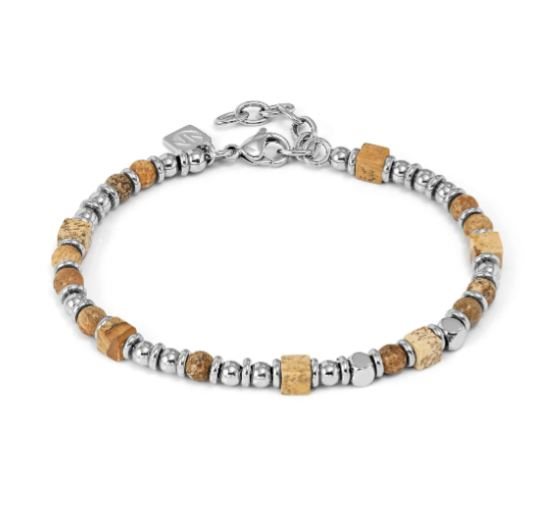 Questo bracciale combina pietre naturali ed elementi in acciaio per uno stile essenziale e contemporaneo. Le diverse varianti cromatiche spaziano dal bianco luminoso alle calde tonalità del marrone, fino alle delicate sfumature di rosa. Un accessorio perfetto sia per lei che per lui, da indossare singolarmente o insieme ad altri bracciali.
