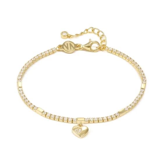 Bracciale Tennis in Argento 925 e Cubic Zirconia con cuore, con rivestimento superficiale, realizzato mediante bagno galvanico, in Oro Giallo 750.