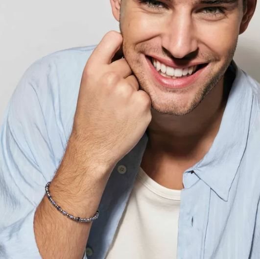 Piccole pietre naturali dalle tonalitร vivaci si alternano alla brillantezza dellโacciaio per un bracciale unisex, da matchare e mixare con altri gioielli per uno stile deciso ed inconfondibile.