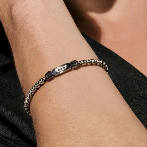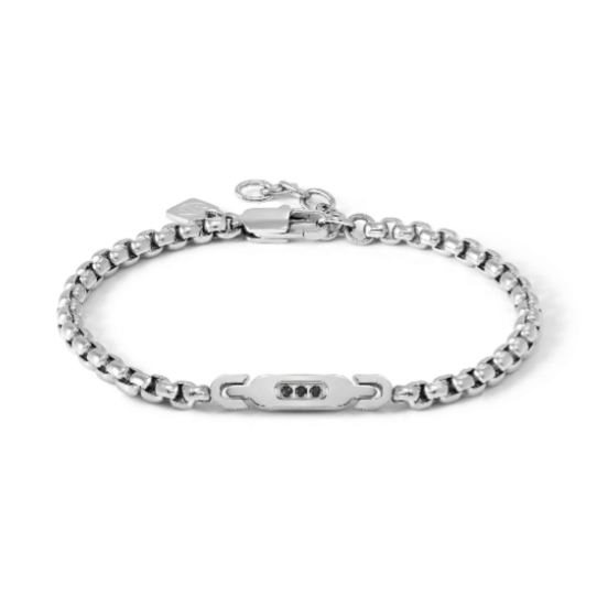 Bracciale in acciaio anallergico, proposto in misura unica adattabile per garantire una vestibilità comoda e versatile. L’elemento decorativo centrale è impreziosito da dettagli in Cubic Zirconia, disponibili nelle varianti bianche o nere, che aggiungono luminosità e carattere al design. Un accessorio elegante ed essenziale, ideale per completare i tuoi outfit quotidiani con un tocco di stile moderno e raffinato.