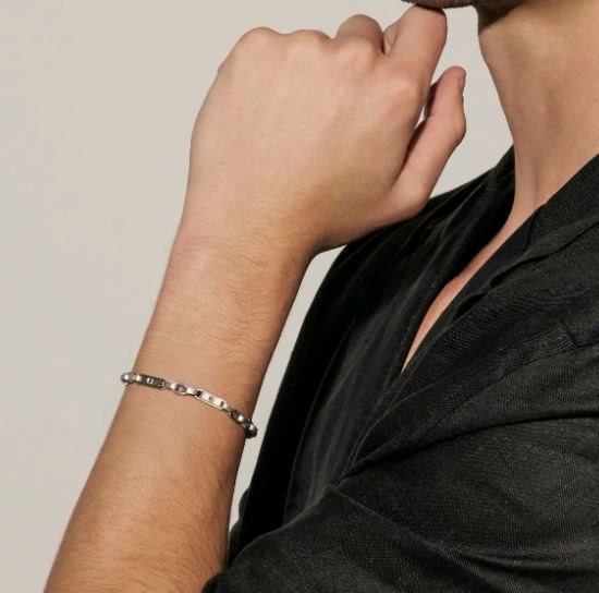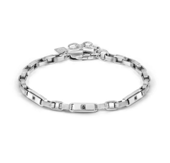 Bracciale in acciaio anallergico della Collezione Manvision, impreziosito da dettagli in Cubic Zirconia disponibile nella variante nera, che aggiungono luminosità e carattere al design.