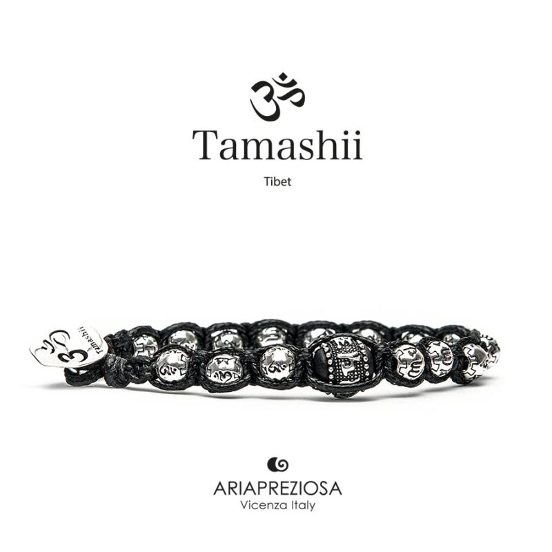Bracciale originale in edizione limitata Tamashii ‘Ruota della preghiera’ arricchito da ruote a sfera in argento 925โฐ incise con il mantra โOm Mani Padme Hลซmโ del Buddha della compassione Cenresig.