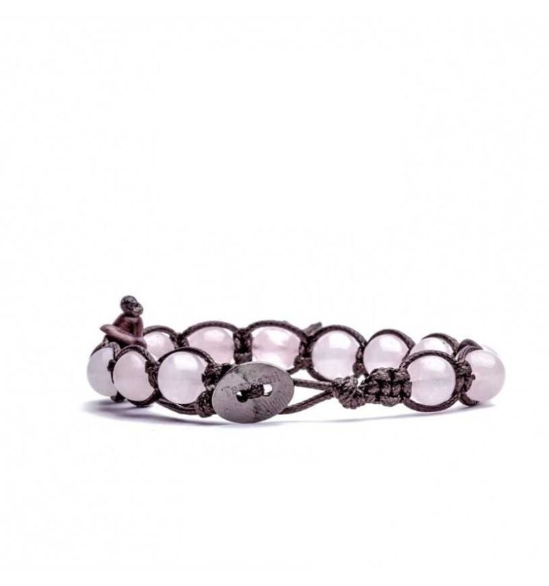 Bracciale originale tibetano Tamashii realizzato con pietre naturaliย QUARZO ROSA.
