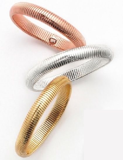 Bracciale in bronzo tre colori composto da tre cerchi in maglia flessibile “Tubogas”.Se cerchi un bracciale che si distingua da tutti gli altri, lo hai trovato! Con un accessorio così non passerai certo inosservata..Un bracciale unico, un classico intramontabile perfetto per essere indossato tutti i giorni da solo o abbinato ad altri bracciali per distinguersi con stile. 100% made in Italy