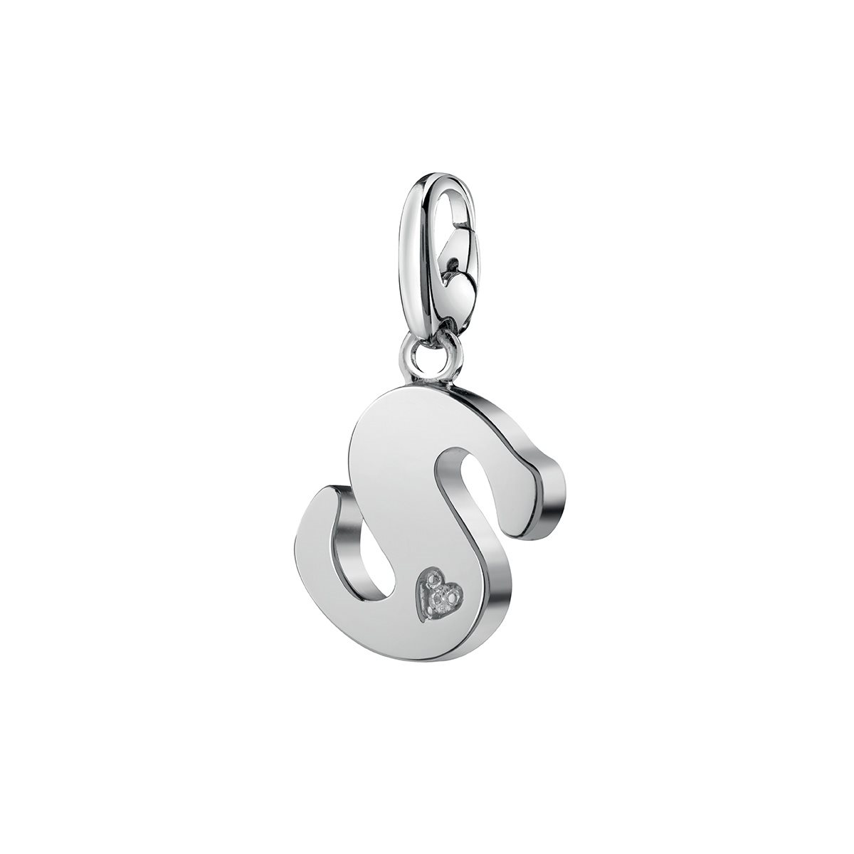 Charm iniziale s in argento con diamantino ct 0.01.Lunghezza totale pendente cm.2.00 solo lettera cm. 1.00