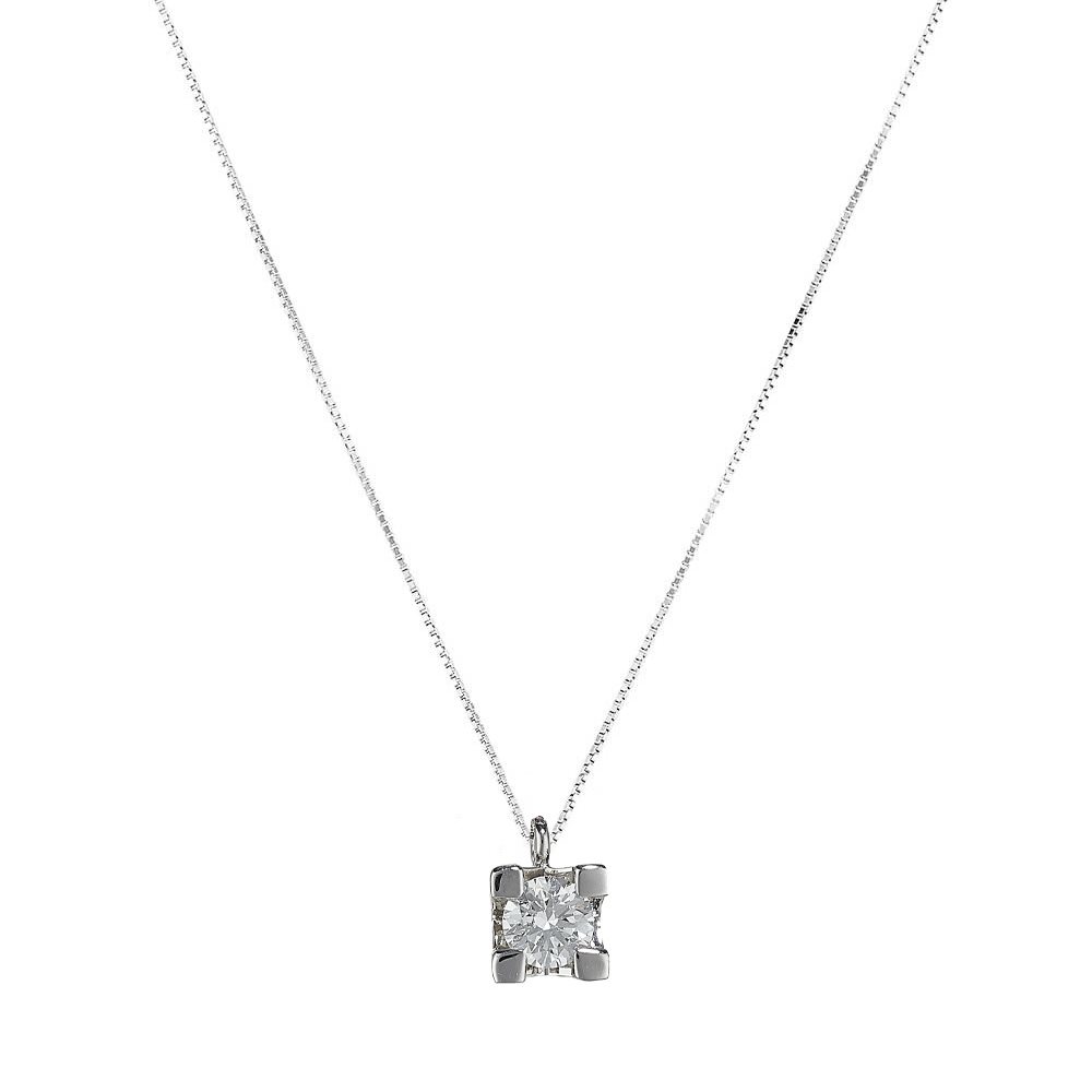 Girocollo con ciondolo a griff diamantato dritto in oro bianco 18 KT con 1 diamante bianco qualità G Si da 0.15 ct con catena veneziana