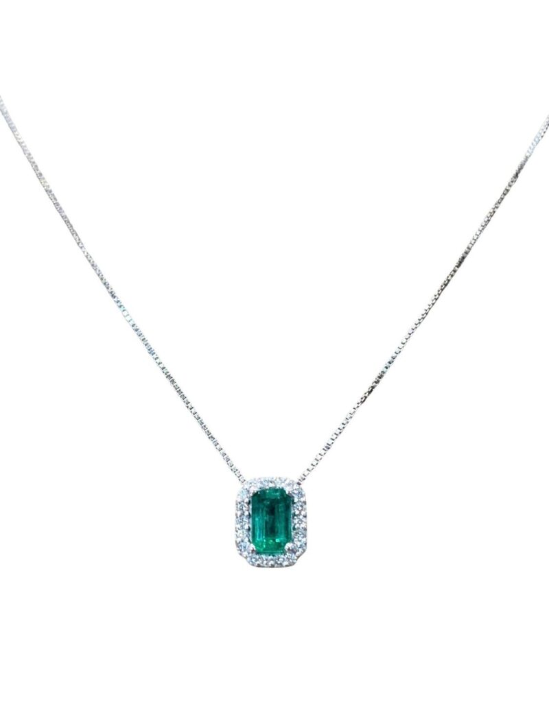 COLLANA LUXGIOIELLI D.0,13 SI G 4X6 / SMERALDO CT.0,50 ORO BIANCO 18KT