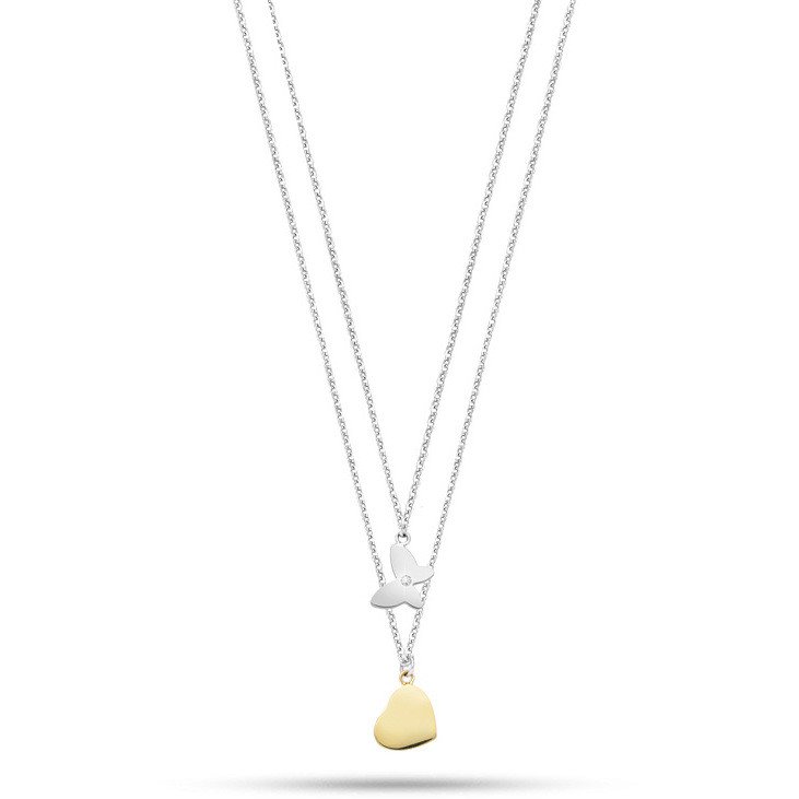 Collana Di Morellato Da Donna In Acciaio, Pvd Oro Giallo E Cristalli Della Collezione Insieme. Collana In Acciaio, Pvd Oro Giallo, Cristalli Bianchi, Lunghezza Cm 45 Regolabile Fino A 40Cm con pendente a forma di cuore in acciaio placcato oro giallo e farfalla in acciaio color argento con zircone al centro.