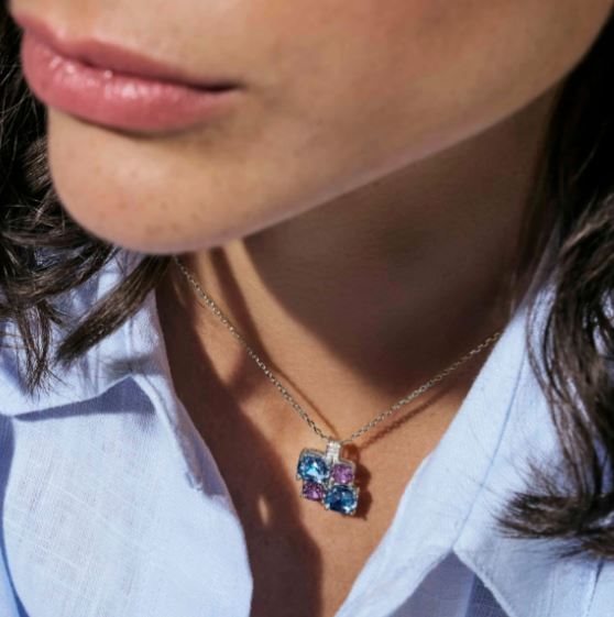 Argento con pendente di Cubic Zirconia colorati