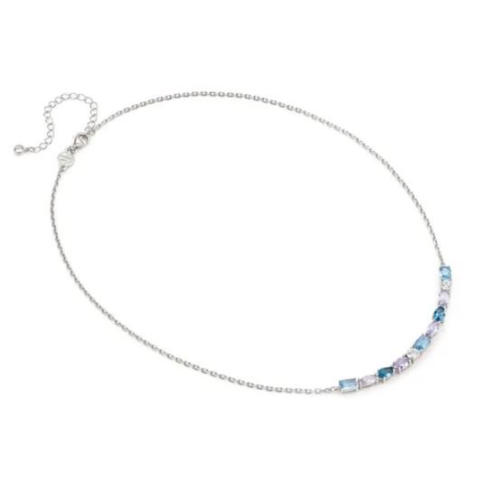 Collana in Argento con Cubic Zirconia di diversi tagli e differenti tonalitร di colore: blu, celeste, lavanda e bianco.