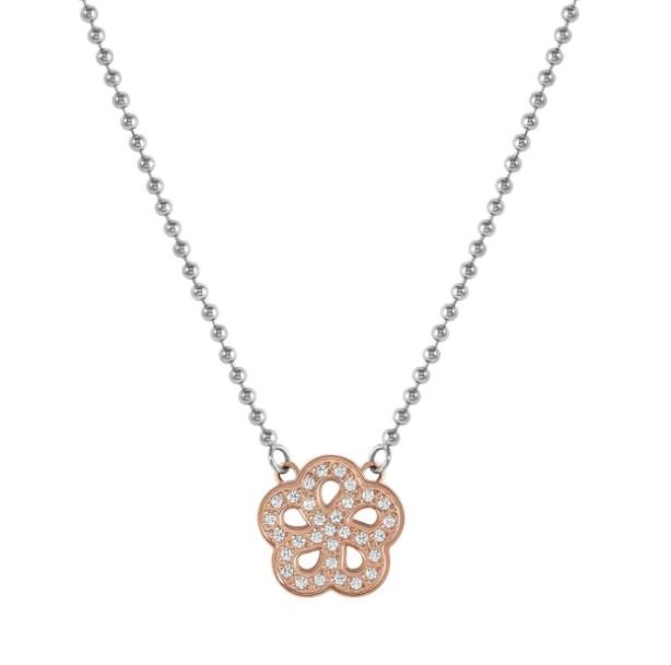collana acciaio SOFFIO D’AMORE con zirconi e centrale in rose’