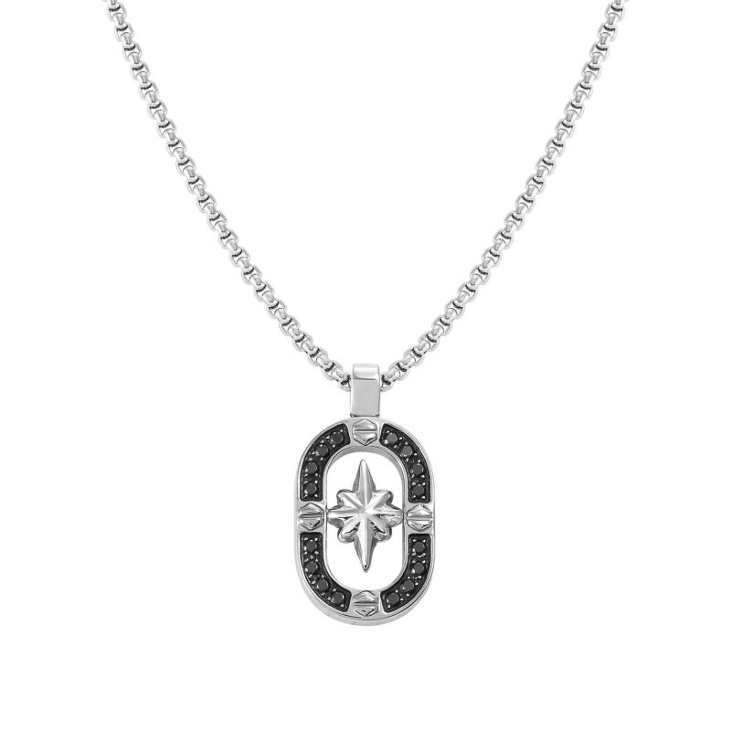Collana Nomination per uomo in acciaio con rosa dei venti con zirconi neri e viti agli indici. Lunghezza 55 cm