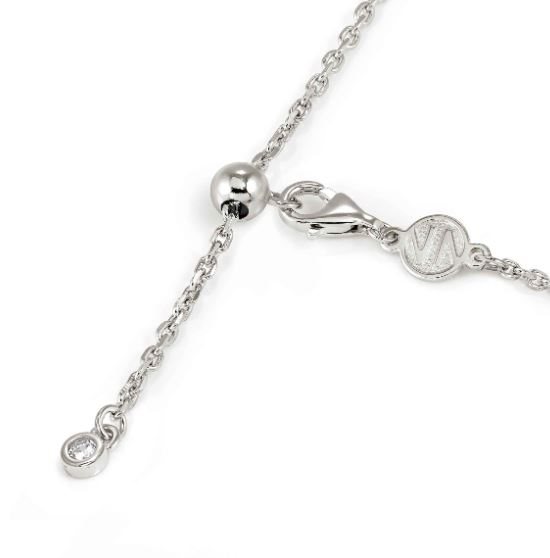 Altre Informazioni Collane in argento con rivestimento superficiale realizzato mediante bagno galvanico in rodio bianco o oro giallo e Cubic Zirconia bianchi. Lunghezza regolabile, max 49 cm. La pratica chiusura con catena a scorrimento consente di regolare facilmente la lunghezza.