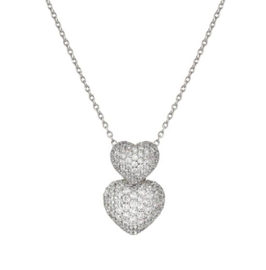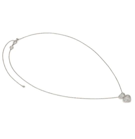Collana raffinata e senza tempo, cattura la luce e dona eleganza grazie ai doppi cuori bombati decorati con pavé di Cubic Zirconia bianchi. Grazie alla sua versatilità, è perfetta da indossare tutti i giorni per impreziosire ogni look o da regalare per un’occasione speciale.