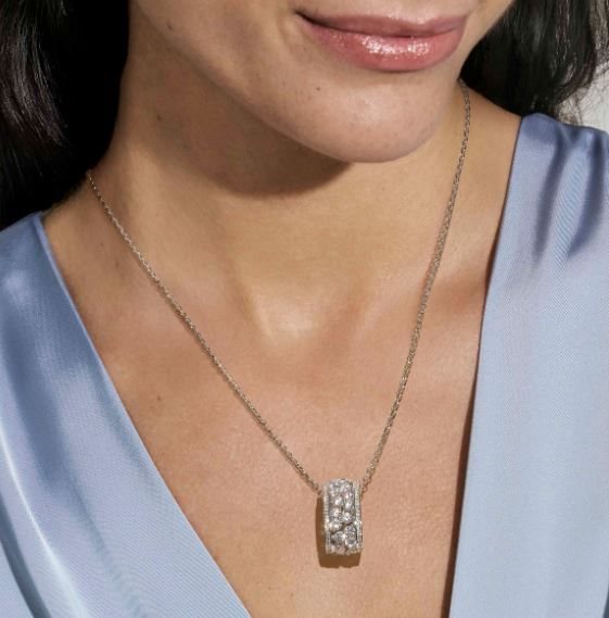 Finale catena con dettaglio in Cubic Zirconia. Catena scorrevole per regolare la lunghezza.