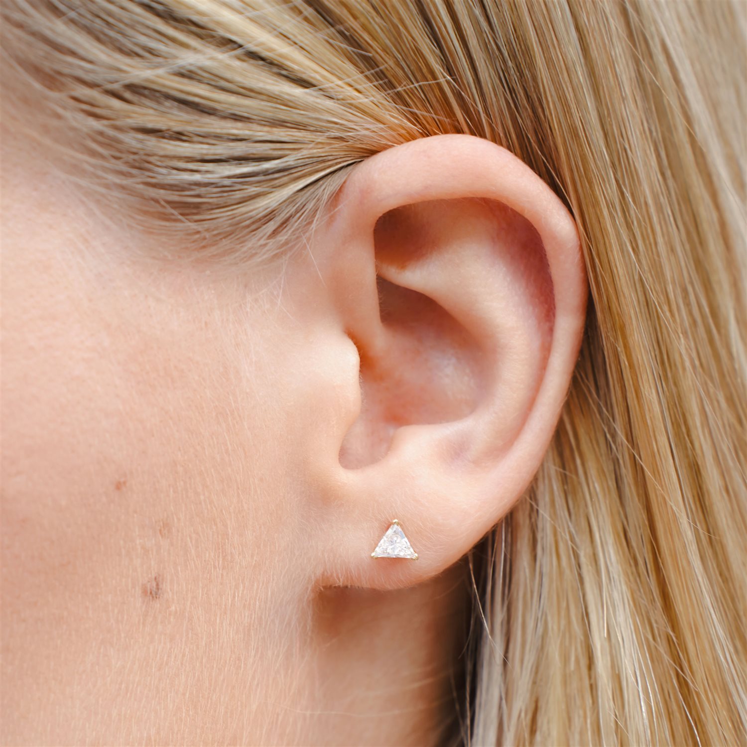 Questi orecchini realizzati in oro bianco riciclato 18 KT incastonano 2 diamanti AMA taglio triangolo per una caratura totale di 0.67 ct