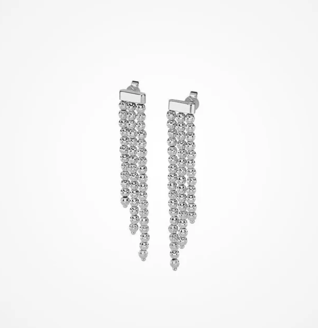 Orecchini composti da 2 file pendenti di sfere diamantate con brevetto Desmos