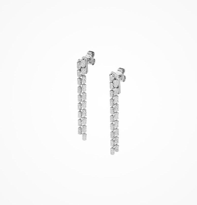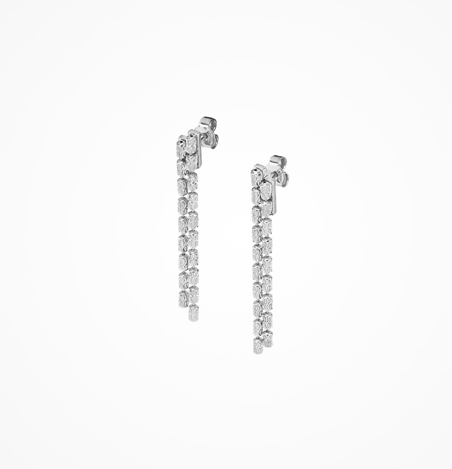 Orecchini pendenti a 2 file di bariletti in argento 925 con diamantatura brevettata Desmos
