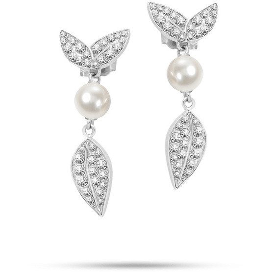 Orecchini MORELLATO della linea NATURA in acciaio rodiato in argento con perle naturali e cristalli