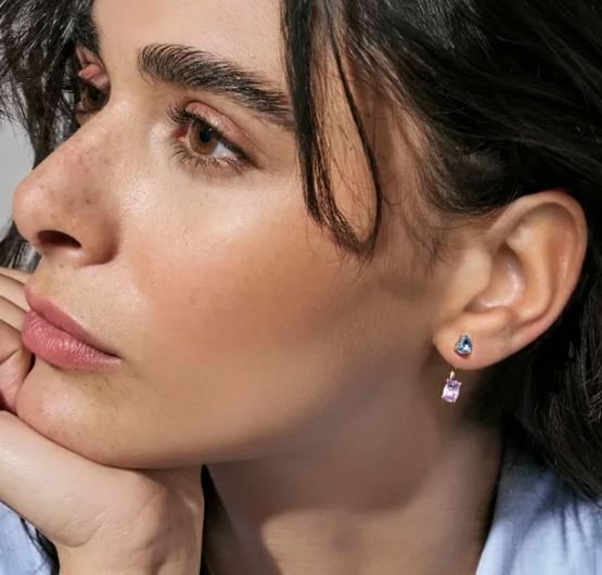Orecchini in Argento disponibili con rivestimento superficiale, realizzato mediante bagno galvanico in Rodio Bianco. Decorati con due pietre Cubic Zirconia dai colori tenui, ideali per chi cerca un look dolce e raffinato.