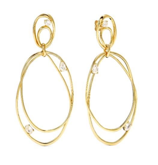 Orecchini in argento con maxi pendente ovale, caratterizzati da un intreccio di linee sinuose che unisce semplicità e un tocco di stravaganza. Le forme morbide e romantiche raccontano lo spirito libero della collezione, trasformando ogni look in un’espressione di stile raffinato e distintivo. Disponibile con rivestimento superficiale in rodio bianco o oro giallo .