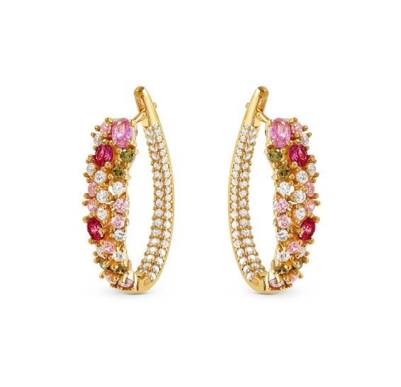 Gli orecchini Mosaica si distinguono per il loro design esclusivo, impreziosito da 81 zirconi multicolor che catturano e riflettono la luce, creando un sorprendente effetto visivo incastonati in argento sterling placcato oro 18 carati.