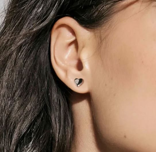 Orecchini in Argento 925 a cuore con Cubic Zirconia; disponibili con rivestimento superficiale, realizzato mediante bagno galvanico in Oro Giallo 750.
