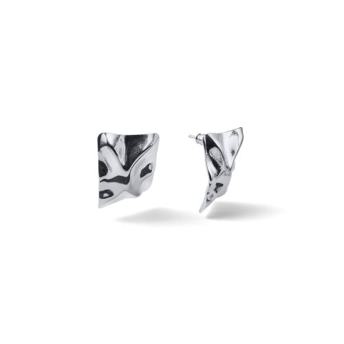 Orecchini con design stropicciato placcati argento, finish lucido. Collezione Lux.