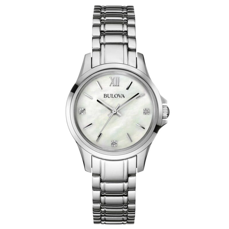 Dalla collezione Classica, modello in acciaio inossidabile con 3 diamanti incastonati a mano individualmente sul quadrante in madreperla bianca, vetro minerale e fibbia dรฉployante a doppia pressione. Impermeabilitร fino a 30 metri.