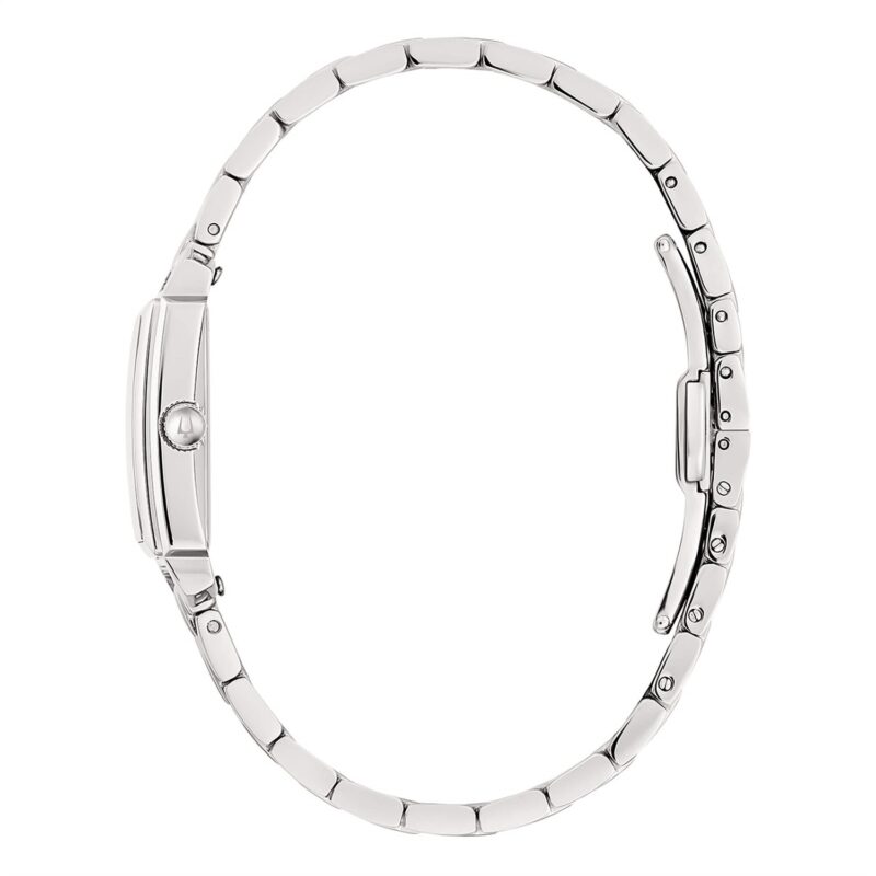 Orologio donna solo tempo modello Sutton Tank. Cassa rettangolare in acciaio lucido. Movimento al quarzo ore minuti. Quadrante in madreperla con 8 diamanti incastonati e certificati, lancette lucide. Vetro minerale. Bracciale regolabile in acciaio lucido e satinato, chiusura a farfalla con pulsanti. Scatola Certificato Diamanti Libretto e Garanzia 5 anni Originali.