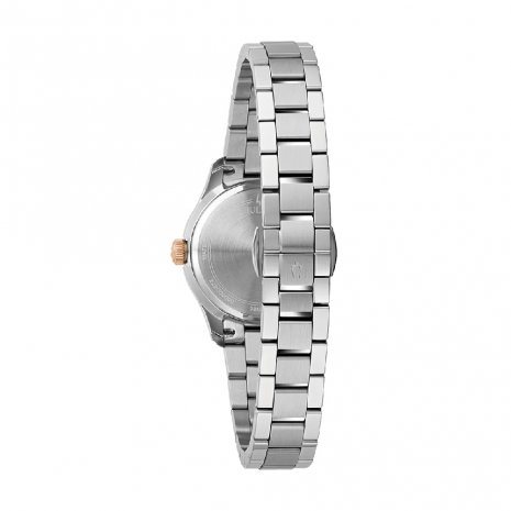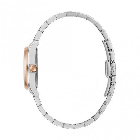 Orologio Donna solo tempo modello Wilton. Cassa in acciaio satinato e lucido, lunetta e corona placcate oro rosa. Movimento al quarzo ore minuti secondi data. Quadrante argento con lavorazione guillochรจ al centro, cifre romane lucide oro rosa, lancette lucide oro rosa e luminescenti. Vetro minerale leggermente bombato. Bracciale regolabile in acciaio lucido e satinato, chiusura deployante con pulsanti. Scatola Libretto Istruzioni e Garanzia 2+1 anni Originali.