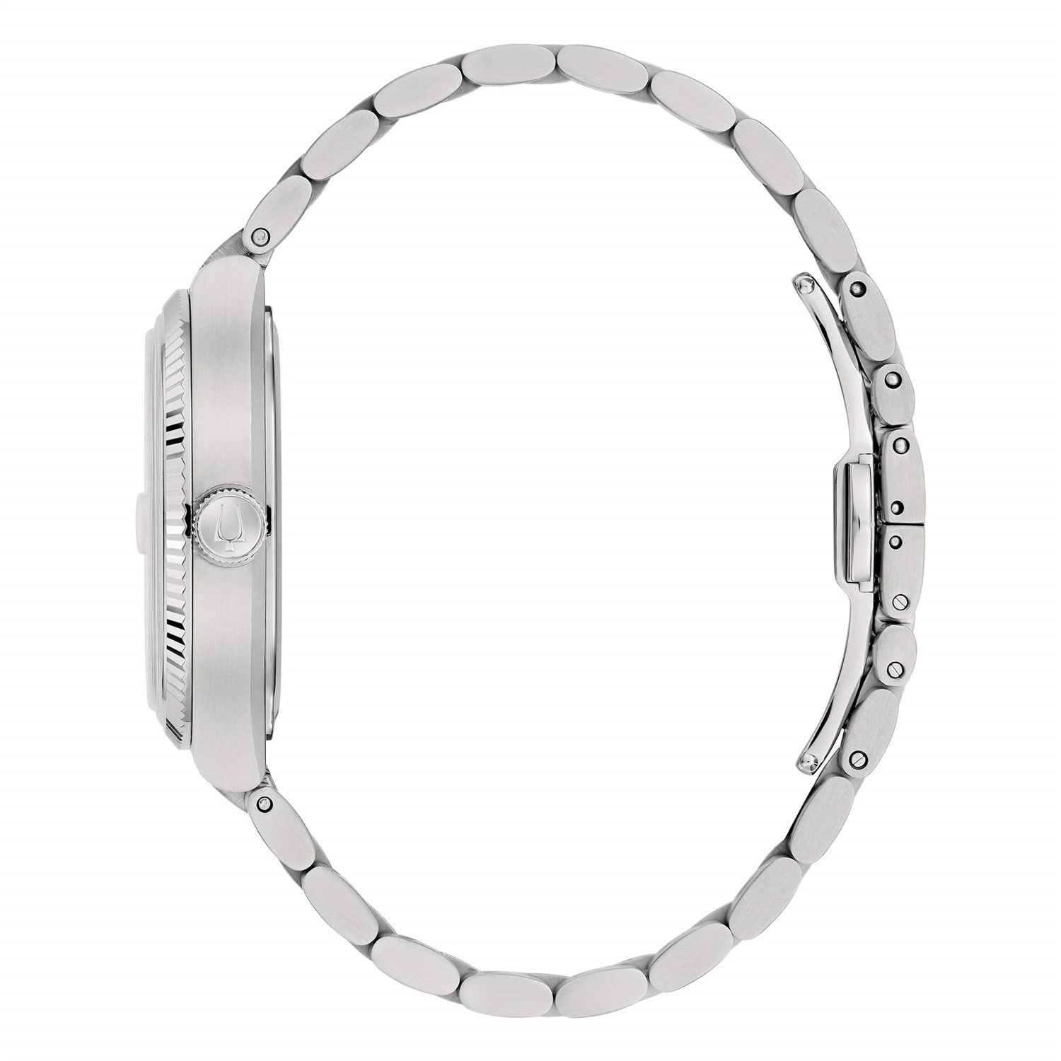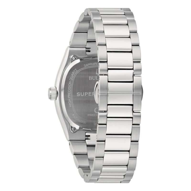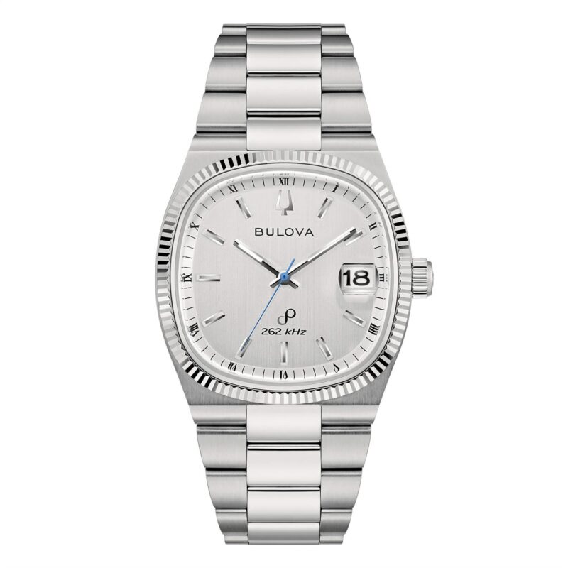 Orologio unisex Solo Tempo modello Super Seville. Cassa in acciaio lucido e spazzolato design vintage a cassa “TV”, lunetta zigrinata lucida. Movimento al quarzo High Precision 262kHz una tecnologia brevettata da Bulova. La sua precisione straordinaria consente alla lancetta dei secondi di scorrere con una fluiditร rara, tratto distintivo di questa avanzata tecnologia. Vetro zaffiro con lente sulla data. Quadrante argento lancette lucide luminescenti indici applicati con punti luminosi data ad ore 3. Bracciale regolabile in acciaio lucido e spazzolato con chiusura deployante a scomparsa. Impermeabile 3 bar (3 atm) Scatola libretto e Garanzia 5 anni Originale.