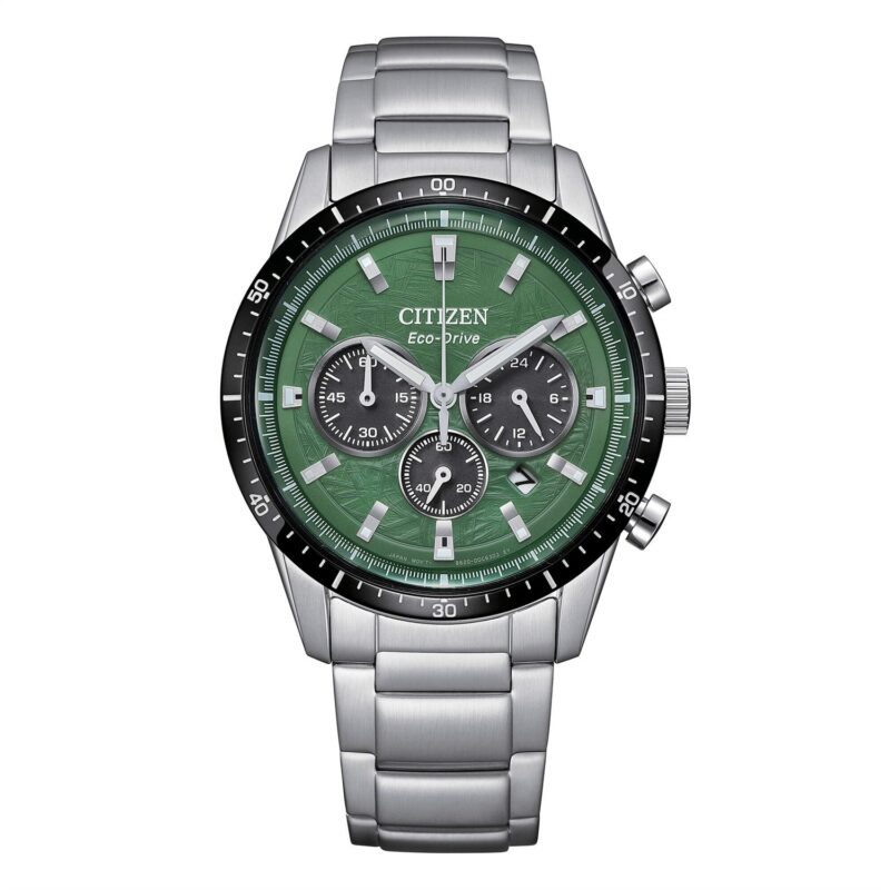 Orologio Cronografo Uomo Collezione T9 Crono. Cassa acciaio inox lucido e spazzolato ghiera nera lucida fissa. Fondo serrato a vite. Movimento al quarzo Eco Drive a carica luce con riserva di carica di 270 giorni con funzione di cronografo a 1/5 di secondo fino a 60 minuti. Quadrante verde con lavorazione in rilievo, indici e lancette luminescenti. Vetro minerale leggermente bombato. Bracciale regolabile in acciaio lucido e spazzolato, chiusura deployante con pulsanti. Impermeabile 10 bar (10 atm). Scatola e Libretto Istruzioni Originali. Garanzia 5 anni.
