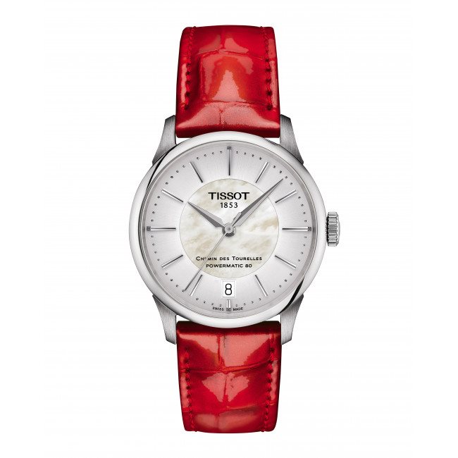 Orologio in acciaio t classic cinturino rosso, quadrante in madreperla Bianca