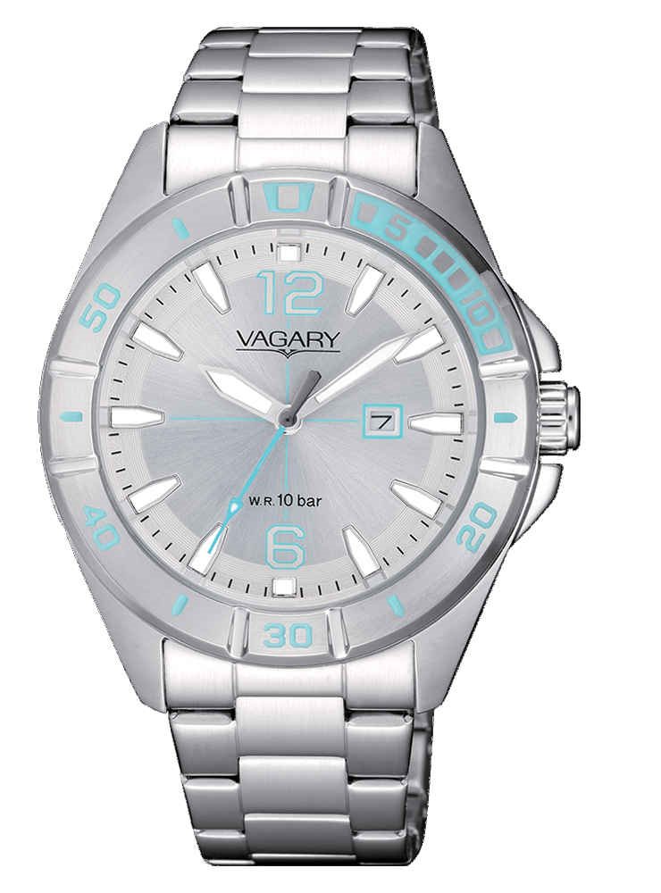 Cassa in acciaio con fondo serrato a vite. Bracciale in acciaio con chiusura di sicurezza. WR 10 bar.