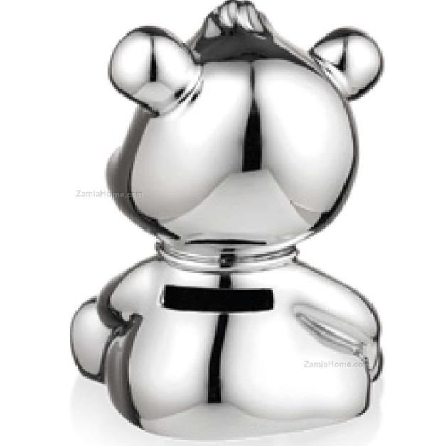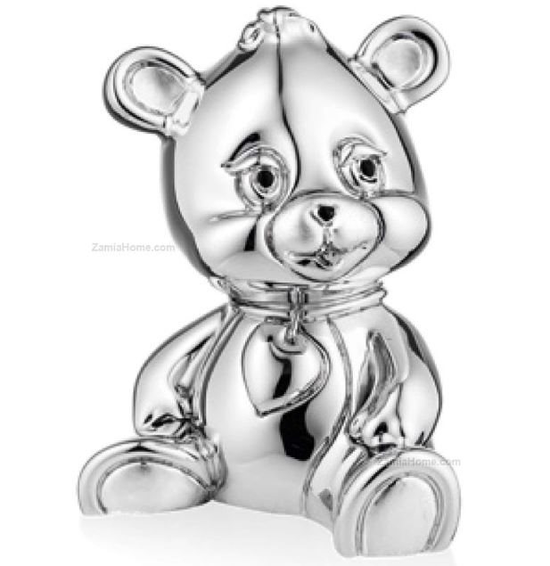 Orso salvadanaio in resina argentata.